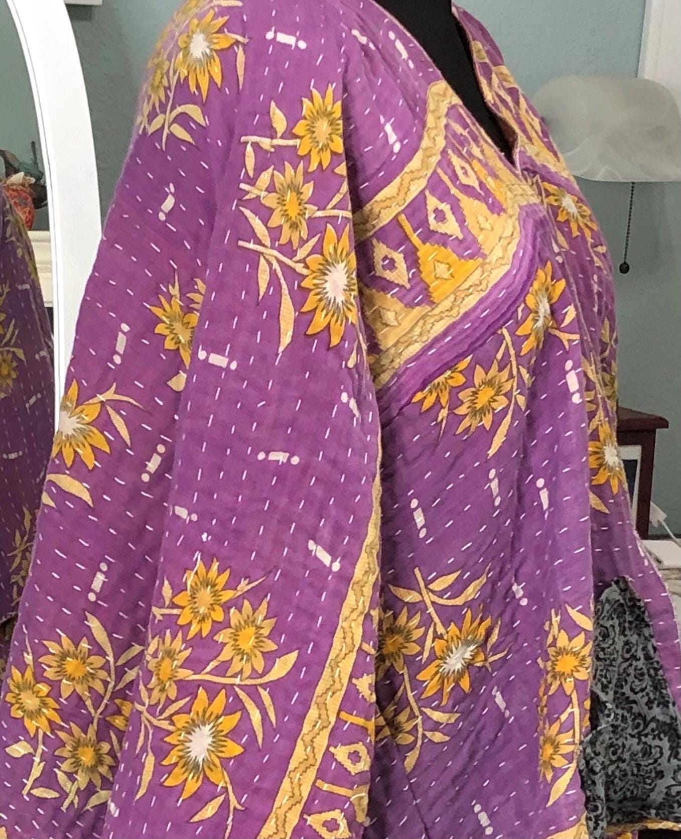 Women’s shrug jacket handmade kantha reversible purple orange sunflower cotton quilted short jacket reversible easy fit free size