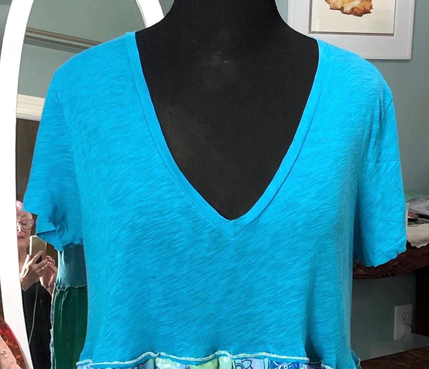 This V neck tee top is a comfortable fitting women's 2X that flows gently. Please see the measurements below to ensure a perfect fit