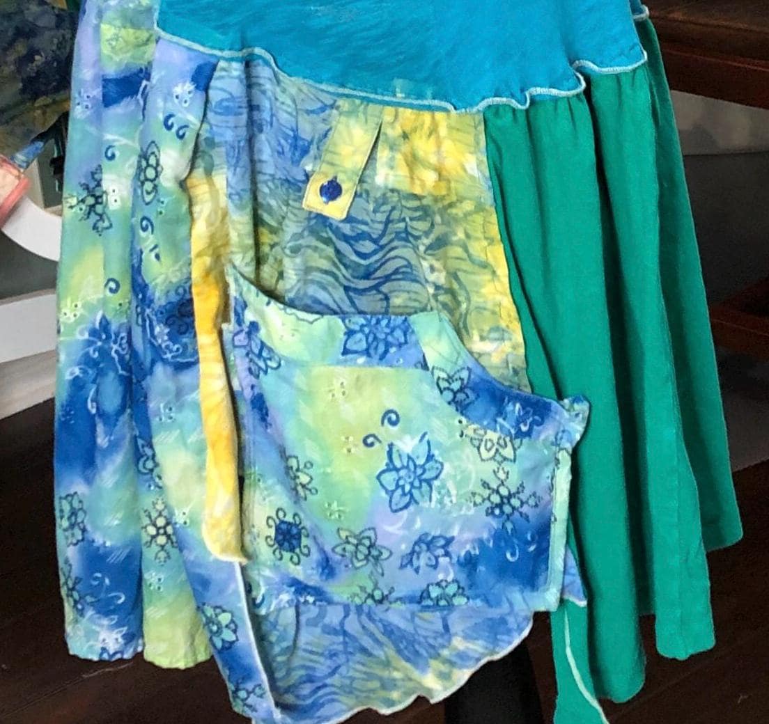 As always, I fell in love with the material of these shirts and saw the hidden potential. This upcycled piece is my new favorite. What more could you ask for? Oh and it has pockets!