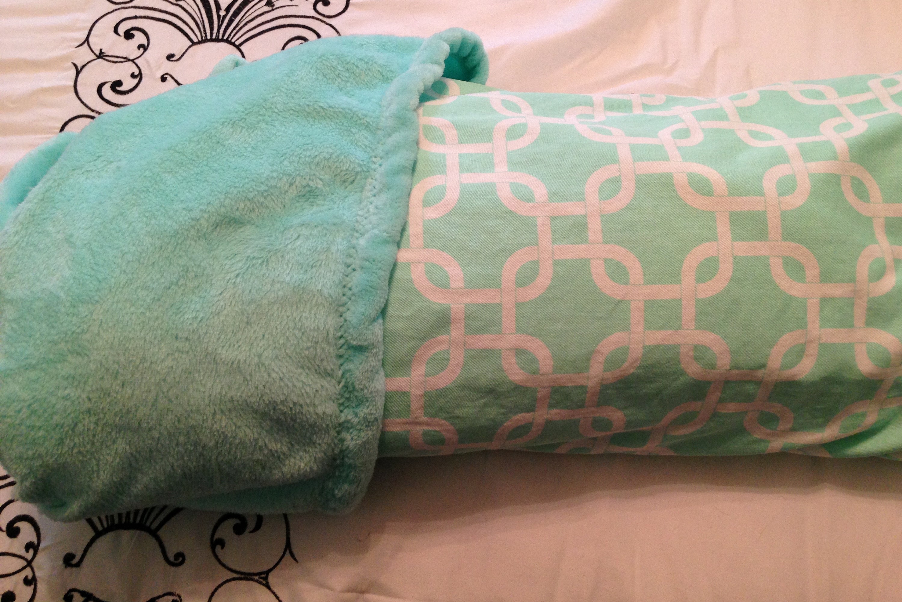 This Childs nap mat cover is the perfect size for day care, grandmas house, or playtime rest. It was lovingly handmade using sturdy cotton home decor fabric and a super soft light weight minky like throw. Both fabrics were pre washed before construction. The nap mat cover will easily accommodate a 5/8"-2" By 19" thick mat. The mat is simply slipped in from the end. This style enclosure keeps the cover in place while the child is resting. The back of the cover is a high quality home decor fabric in light aqua with white quatrefoil or trellis print. The inside is a cuddly super soft bright aqua fabric wide enough to completely cover the napping child. There is a pillow built into the top of the cover just the right size for a resting child. To keep the child company during nap time there is a colorful little girl reading to her unicorn embroidered on the corner of the cover.